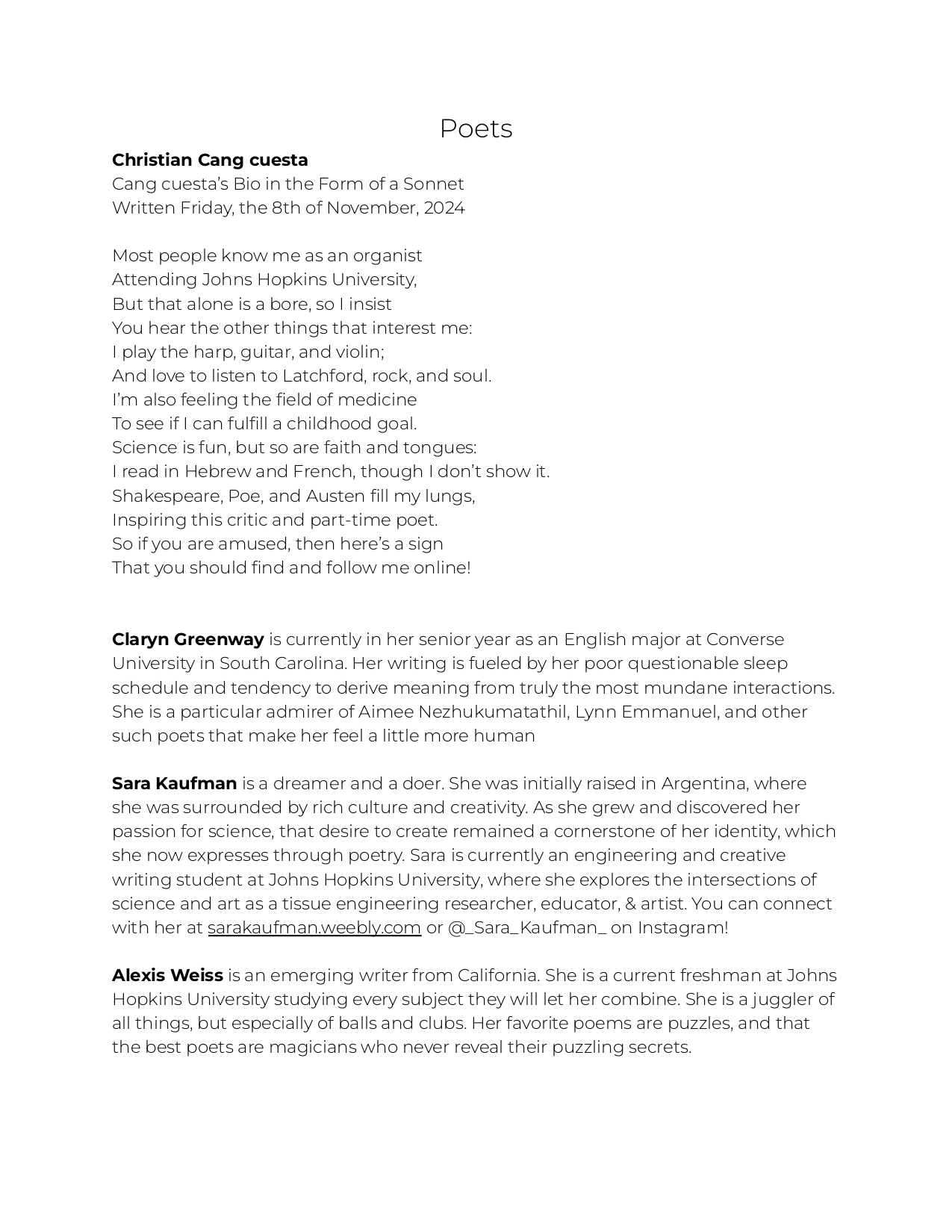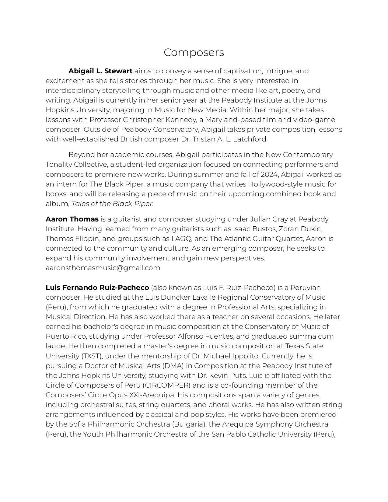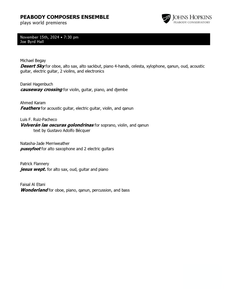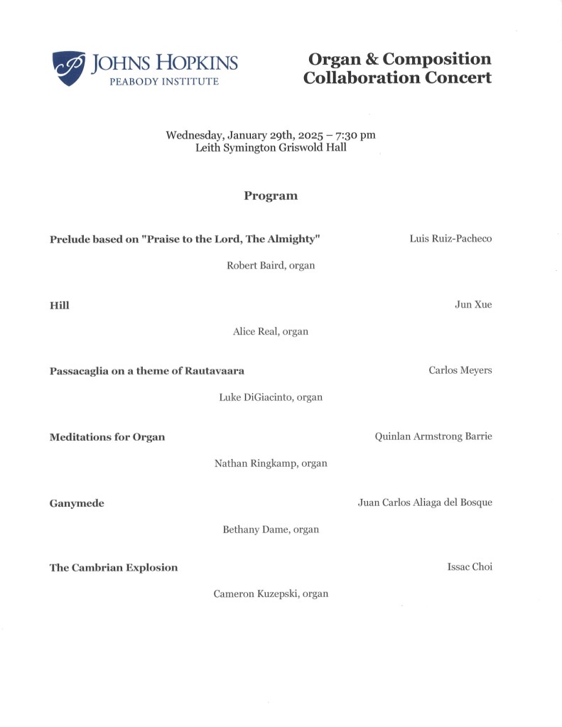 March 29 and 30, 2025. Joe Byrd Hall (Peabody Institute of the Johns Hopkins University)