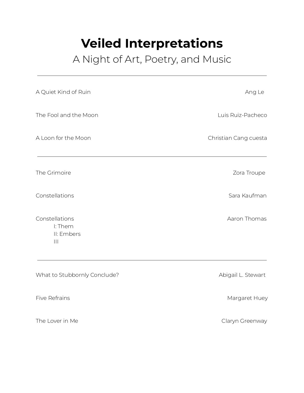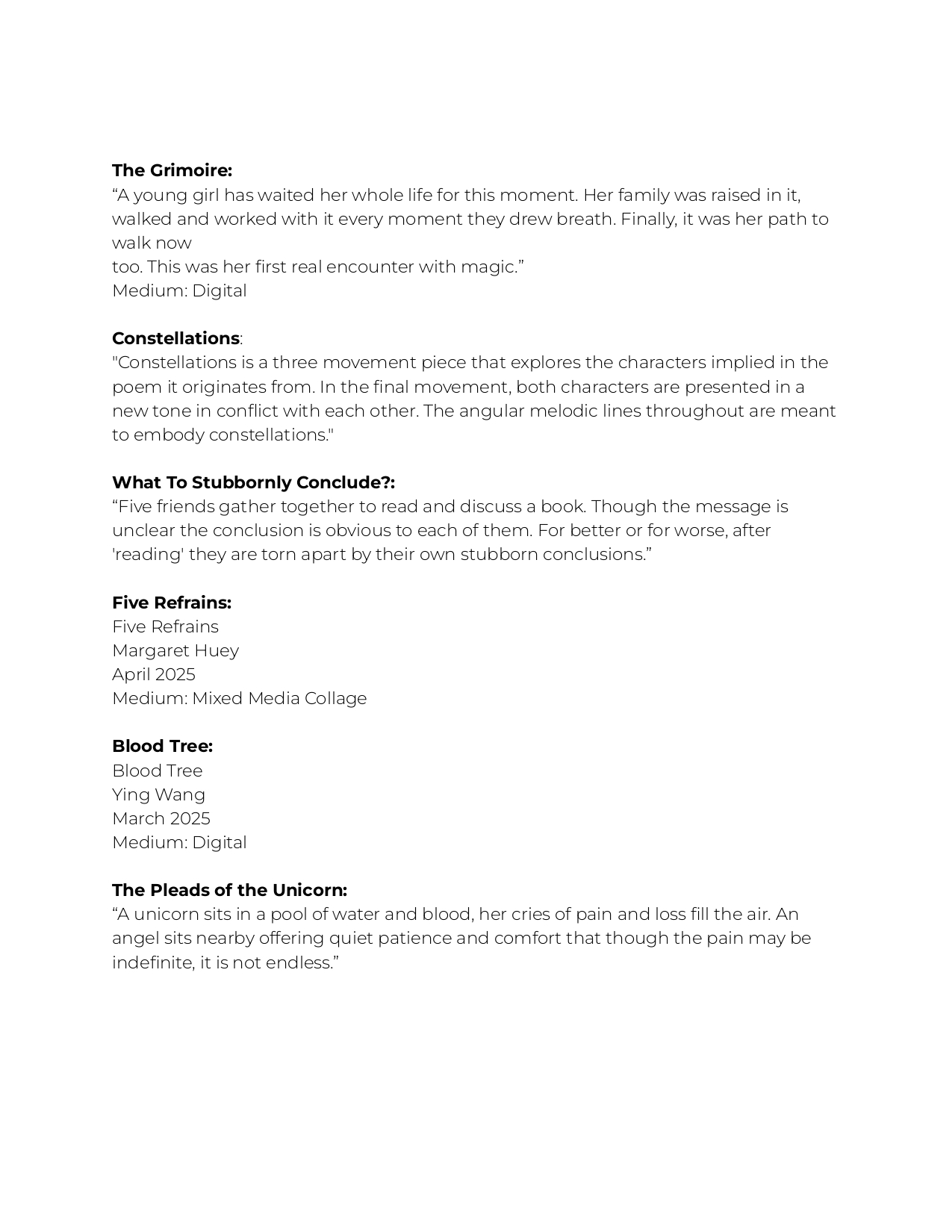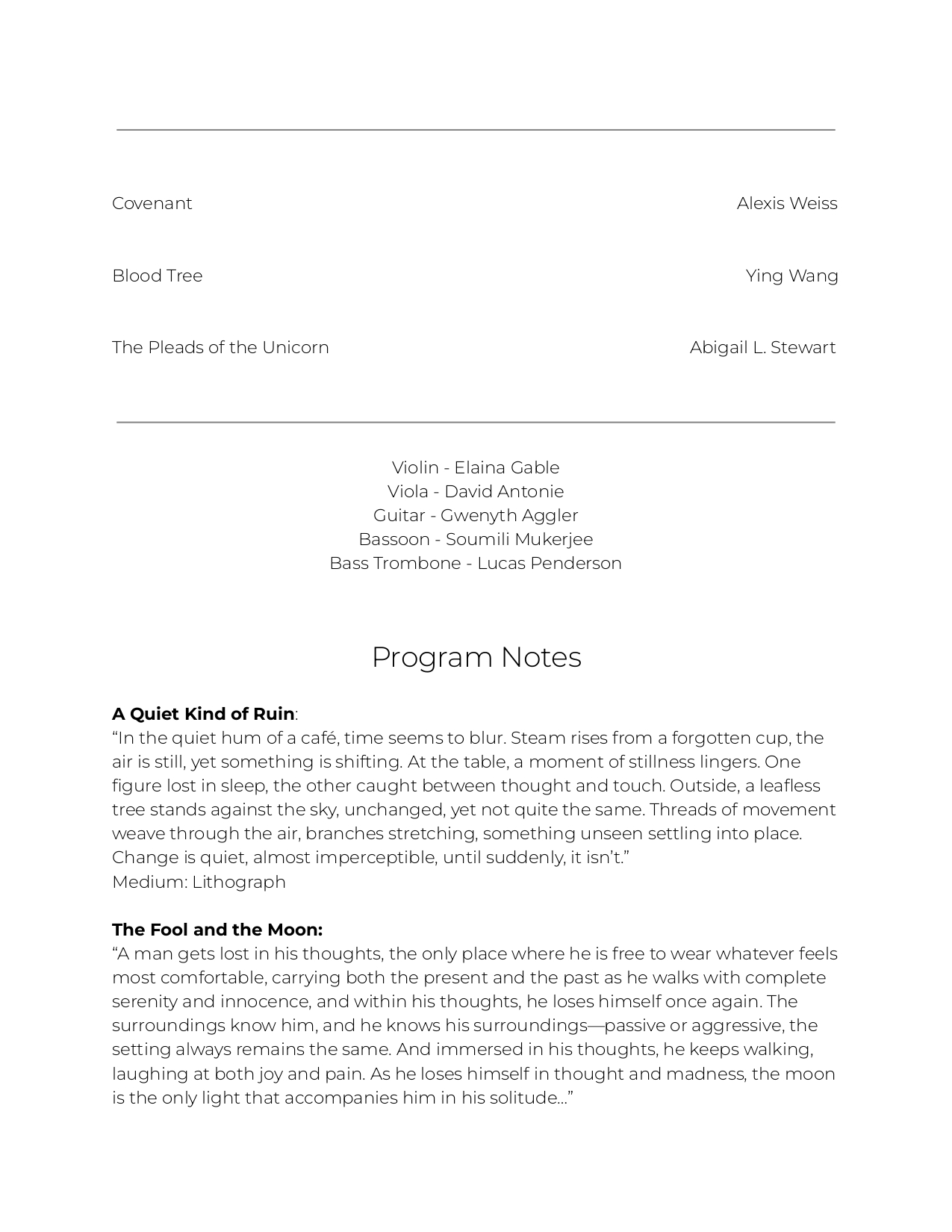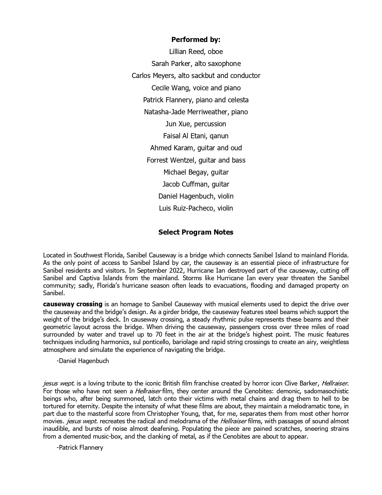In collaboration with: Dr. Michael Ippolito (Piano), Cora Winstead (Mezzo-soprano), Cristal Martinez-Perez (Violin), Iana Baez (Violin), Tiana Moritz (Viola), Kelsey Sexton (Violoncello), Zachary MacDonald (Clarinet)