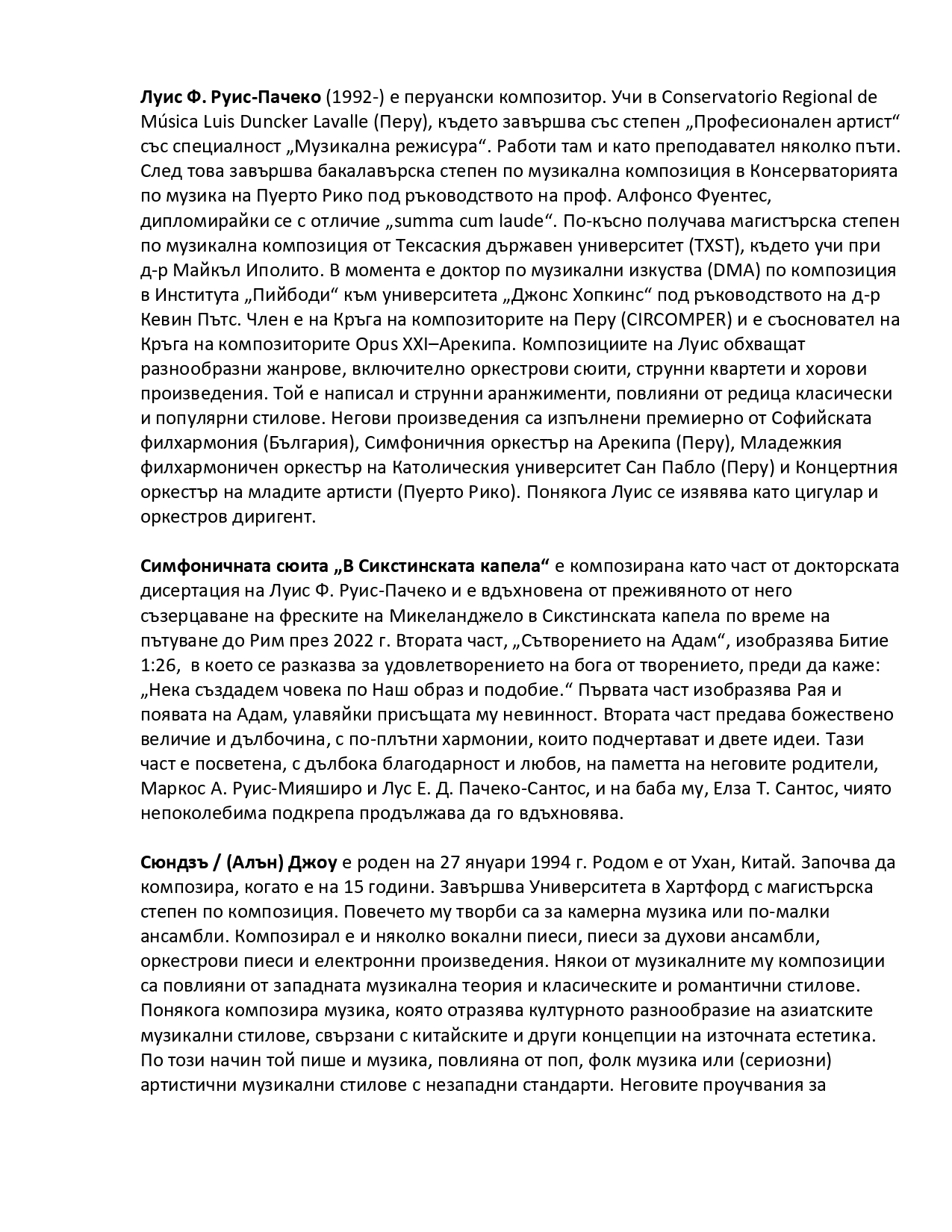 Premiere of At the Sistine Chapel: II. The Creation of Adam by the Sofia Philharmonic Orchestra.